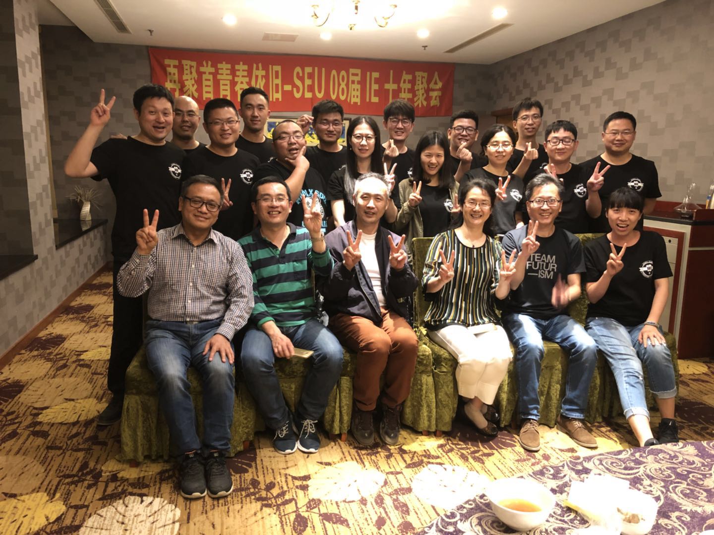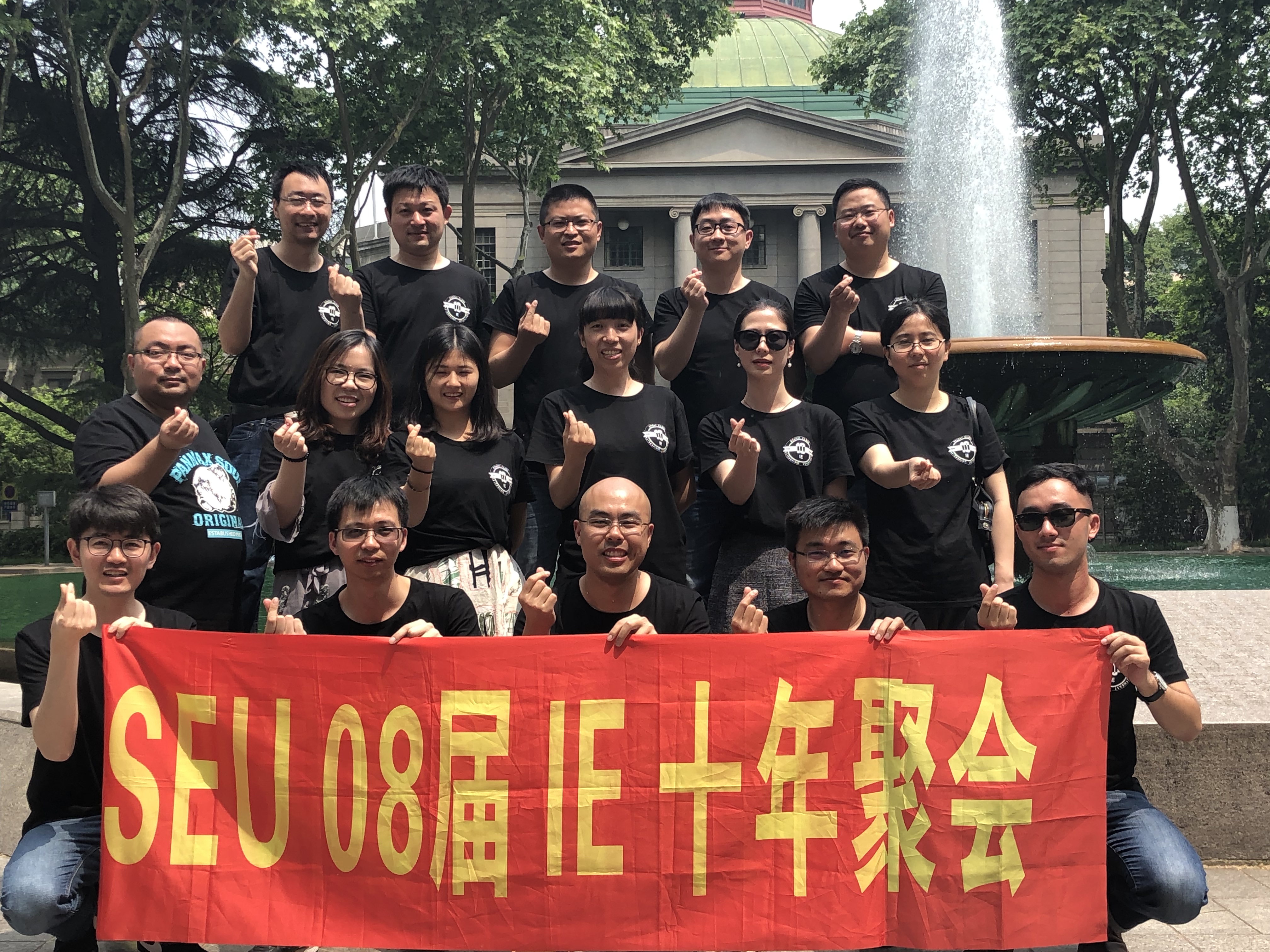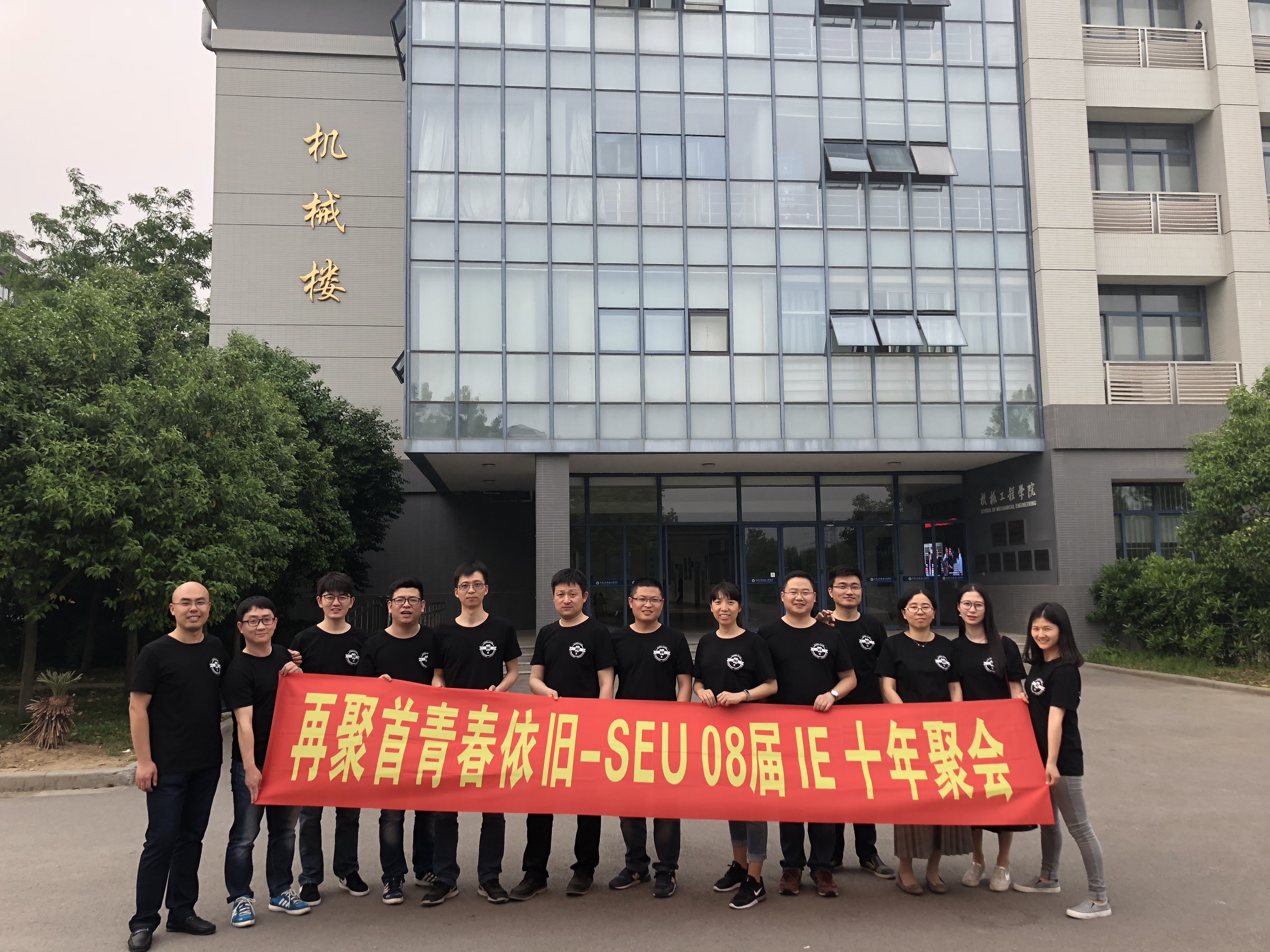 2018年4月29日,026041班校友一行16人回母校聚会,庆祝毕业10周年。同学们漫步于大礼堂前、六朝松下、九曲桥畔,一起参观校史馆,重游紫金山,回忆当初、共叙友情。学院党委书记张志胜教授、工业工程系主任肖锋老师及设计系王海燕老师等热情接待了各位校友。