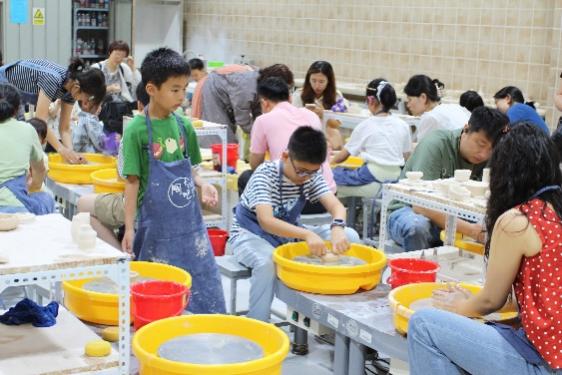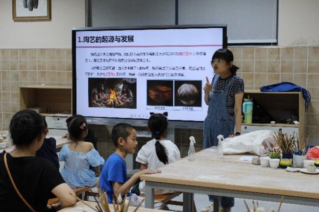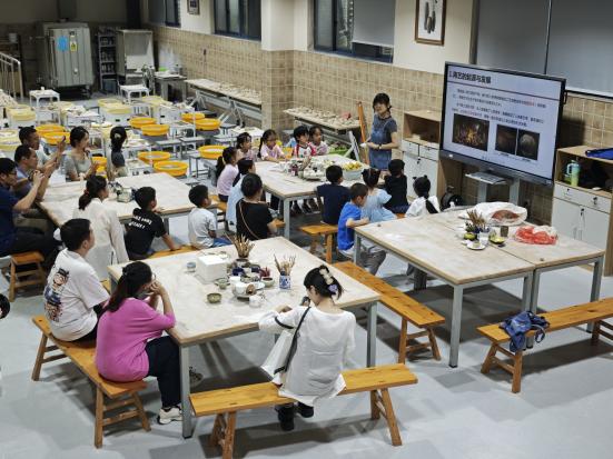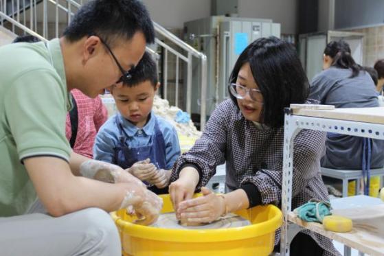 在“陶艺拉坯”体验环节化身创意乐园,大家学习陶瓷工艺的由来和技艺与中国的渊源,在老师示范引导下揉泥、拉坯实操,共同设计作品并完成拉坯制作,提升了小朋友们的操作与动手能力。