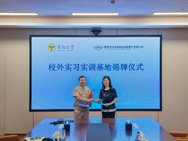 2025年9月17日,东南大学与南京中远海运船舶设备配件有限公司校外实习基地揭牌仪式顺利举行。开云手机版登录入口党委书记王军、副院长孙东科、航空航天系副教授张培伟等老师出席了揭牌仪式,南京中远海运船舶设备配件有限公司执行董事/党委书记许东晓、常务副总经理文涛、副总经理/工会主席戴魏魏、技术信息研发部/数智化推进部部长蒋倩、人力资源部/组织部部长王建军等相关领导出席揭牌仪式。